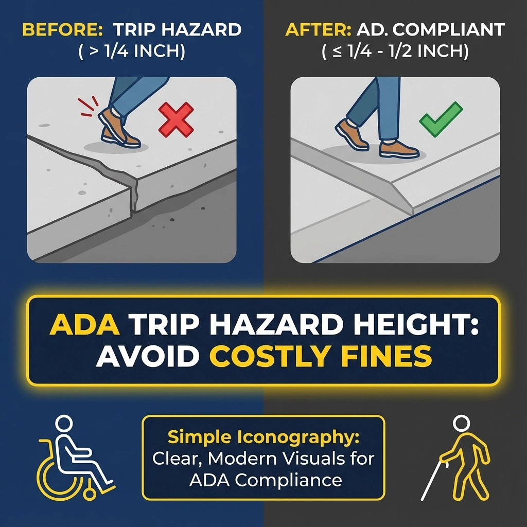 Property managers and building owners face a ticking time bomb hidden in plain sight: sidewalk trip hazards that violate ADA standards. A single vertical change exceeding 1/4 inch can trigger lawsuits costing tens of...